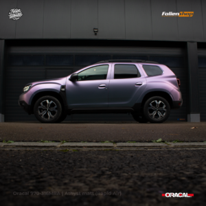 Unsere Geschichte beginnt mit einer Kundin, die noch vor Weihnachten einen großen Wunsch hatte: ihrem Dacia ein fren Wunsch hatte: ihrem Dacia ein fr\u00fisches, modernes Erscheinungsbild zu verleihen. Schwarz war ihr einfach zu schlicht. Die Wahl fiel auf die Oracal 970-316MRA | Amethyst matt (Rapid Air) – eine Folie, die nicht nur durch ihre elegante Fliederfarbe überzeugt, sondern auch an die sanften Farben der Toskana erinnert. Ein echter Hingucker!